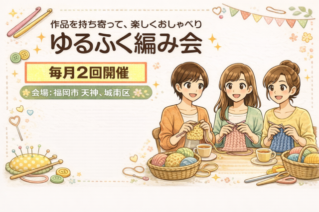 3月の編み会のお知らせ&参加者募集🧶 お茶を飲みながら楽しくおしゃべりして、ゆる〜く編み物を楽しむ会です。初心者さんも経験者さんも大歓迎✨ 日程・会場 3月11日(水):天神会場 3月22日(日):七隈会場 (天気が良い ... 🧶3月のゆるふく編み会参加者募集【11日(水)天神、22日(日)七隈】